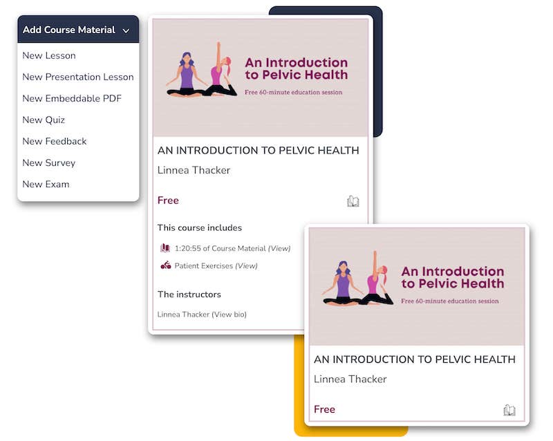 Choose what works for you and your community. You can sell your courses individually, offer them for free, or include them in a membership - or any combination of these options! Embodia is designed to be flexible so the way you package and offer your content is up to you!
