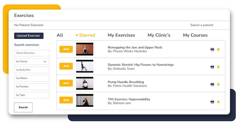 Prescribe personalized home programs, including exercise videos and educational handouts, to guide patients between appointments. Available for practitioners and patients on both web and mobile apps (Apple and Android).